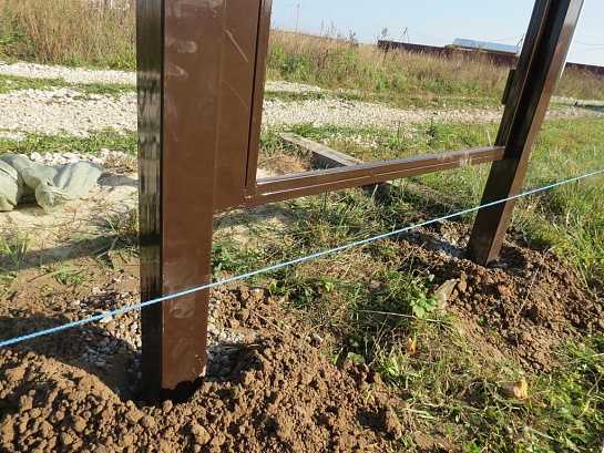 > Забор из профнастила с утрамбованным щебнем 180 метров