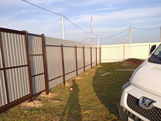 Забор из профнастила с утрамбованным щебнем 180 метров